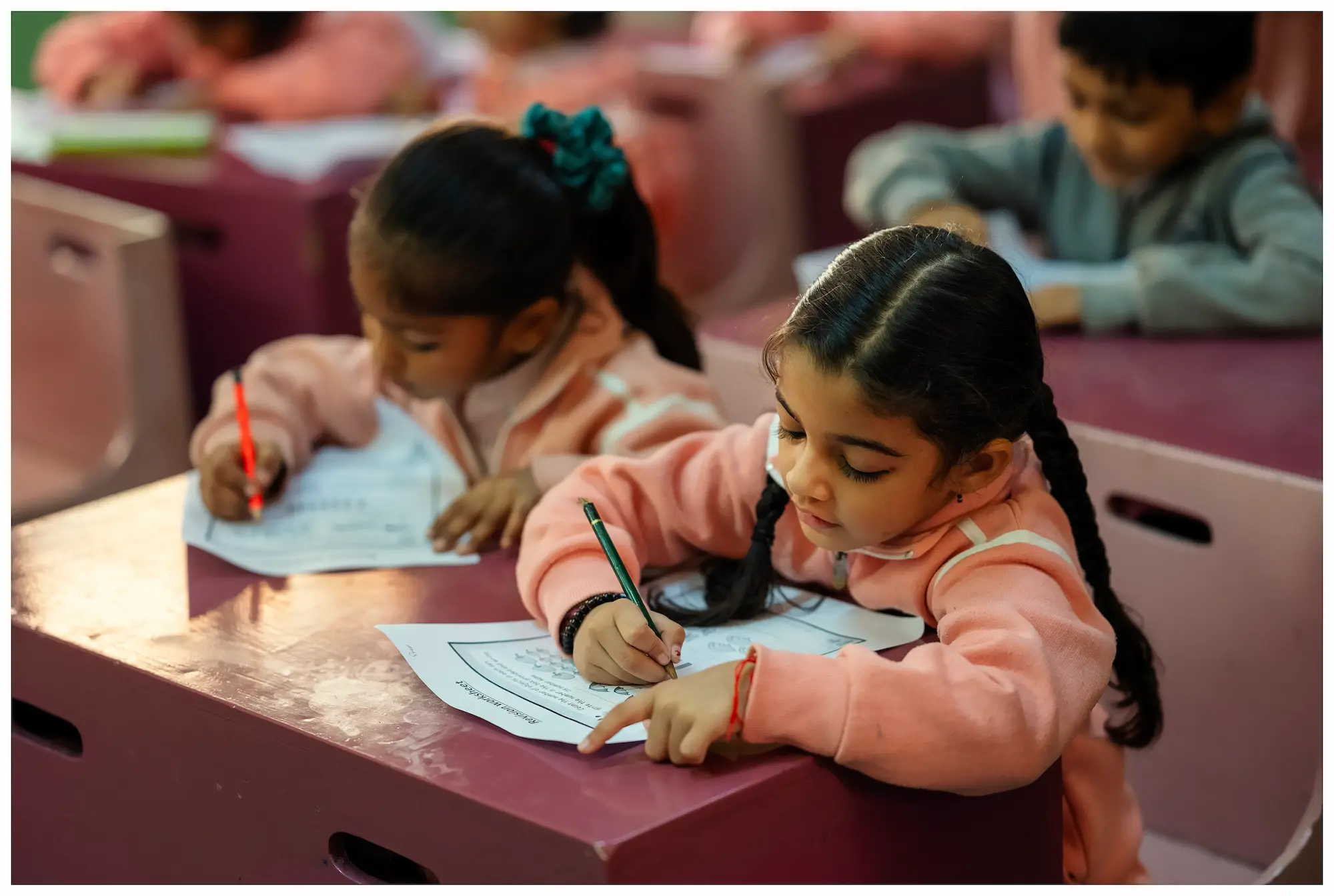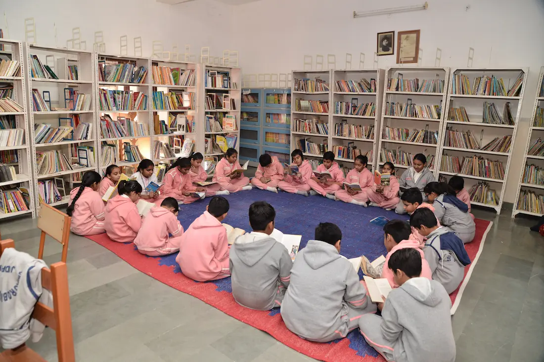 Hindi and English are introduced to the children from the very beginning. At the Nursery stage, the child learns to recognize alphabets with the aid of Flash Cards and other teaching aids. Gradually the child is guided with the aid of sand-paper letters, word building boxes, quiz bags and pattern books to read the alphabet. Preparation